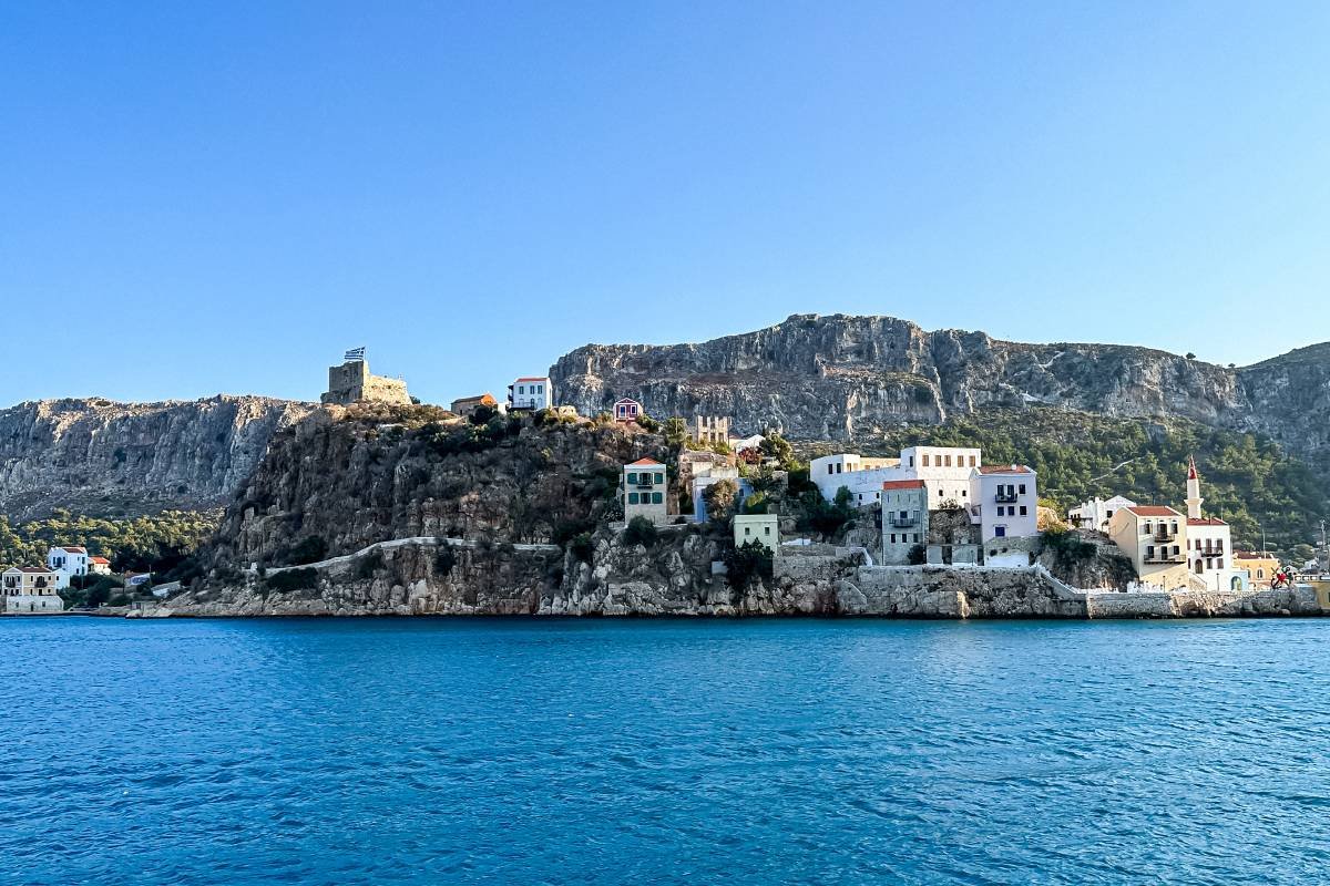 Öğleden sonra hafif bir yürüyüşle adanın en yüksek noktasına çıkabilirsin. Kale, Meis’in panoramasını görmek için en iyi yer.